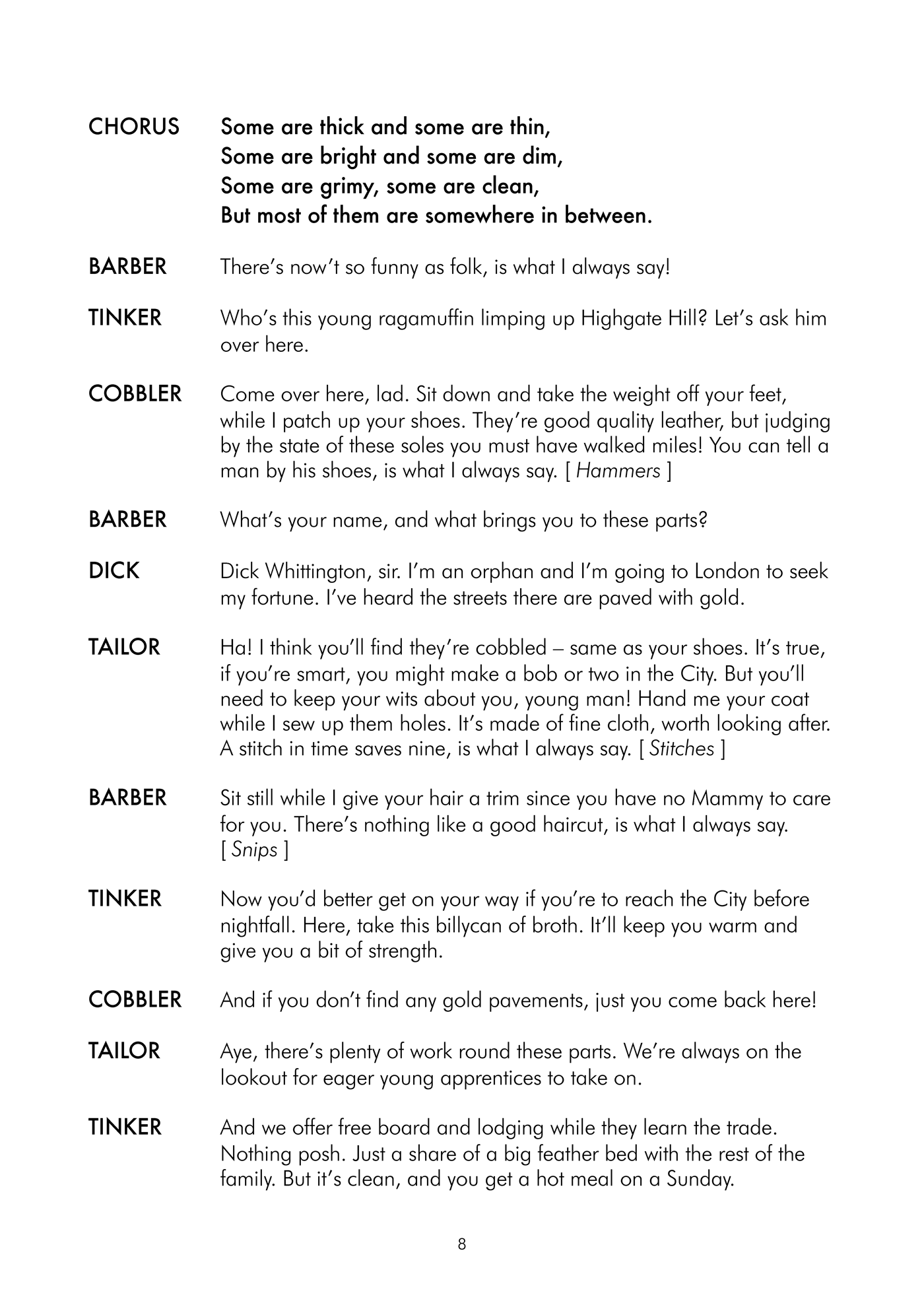 This adventure musical, based on the legend of Dick Whittington, gives an insight into life in the Middle Ages, and shows the importance of hard work, kindness and luck! It is ideal for 9 to 13 year olds, with plenty of choruses of younger pupils, and can be performed throughout the year as well as a Christmas Pantomime.